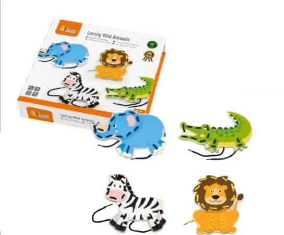 L’enfant développe son raisonnement, sa coordination entre les mains et les yeux grâce à la technique artisanal et apprends les couleurs. Cet ensemble à enfiler comprend 4 adorables animaux sauvages et 4 lacets de couleurs différentes. Jeu en bois de haute qualité, non toxique.