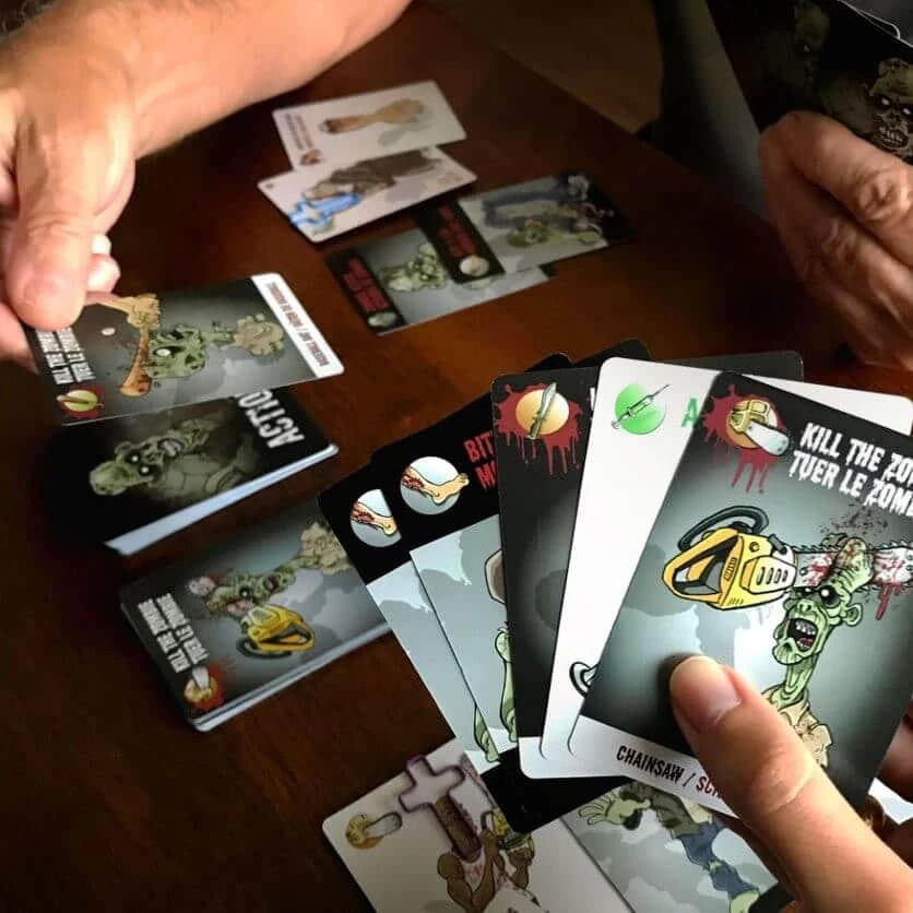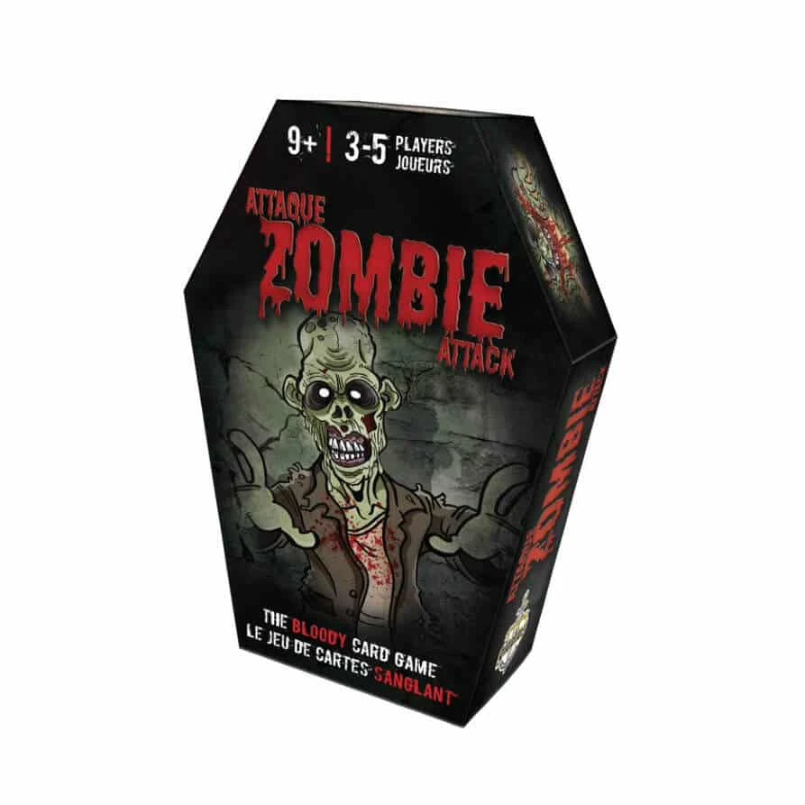 Dans ce jeu de cartes stratégique, vous devez former la horde de zombies la plus puissante en zombifiant les personnages de vos adversaires. Attaquez les autres joueurs à l’aide des cartes ATTAQUE et MORSURE, mais défendez-vous avec l’arme de votre personnage et celles de vos zombies. Saurez-vous survivre dans ce monde infernal?