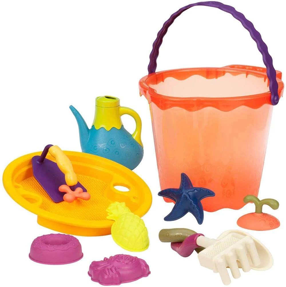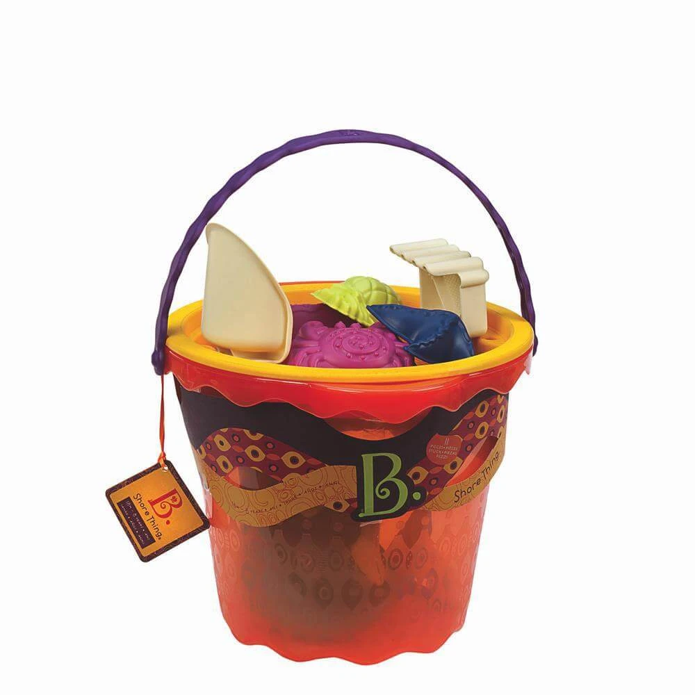 Un seau rempli d’accessoires pour le sable pour jouer à la plage ou au parc !