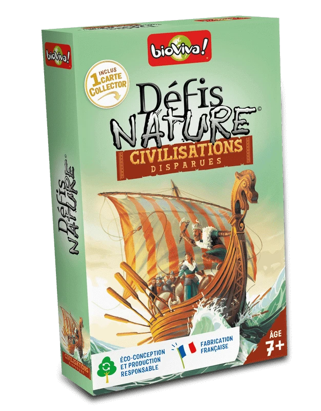 « Défis Nature – Civilisations disparues » vous transporte à travers le temps pour découvrir les civilisations qui ont disparu à travers le monde. Plongez dans l’histoire et pariez sur les points forts de ces civilisations pour collecter toutes les cartes et remporter la partie.