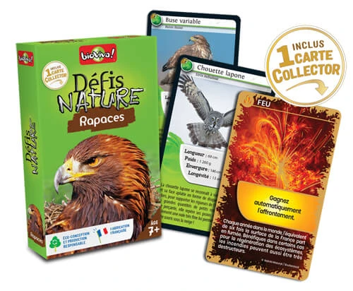 Défis Nature vous emmène à la rencontre des rapaces les plus surprenants de notre planète. Découvrez les espèces à préserver, puis pariez sur les points forts de vos oiseaux pour collecter toutes les cartes du jeu et remporter la partie. Alors, prêts à relever le défi ?