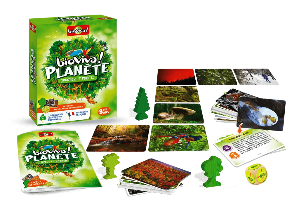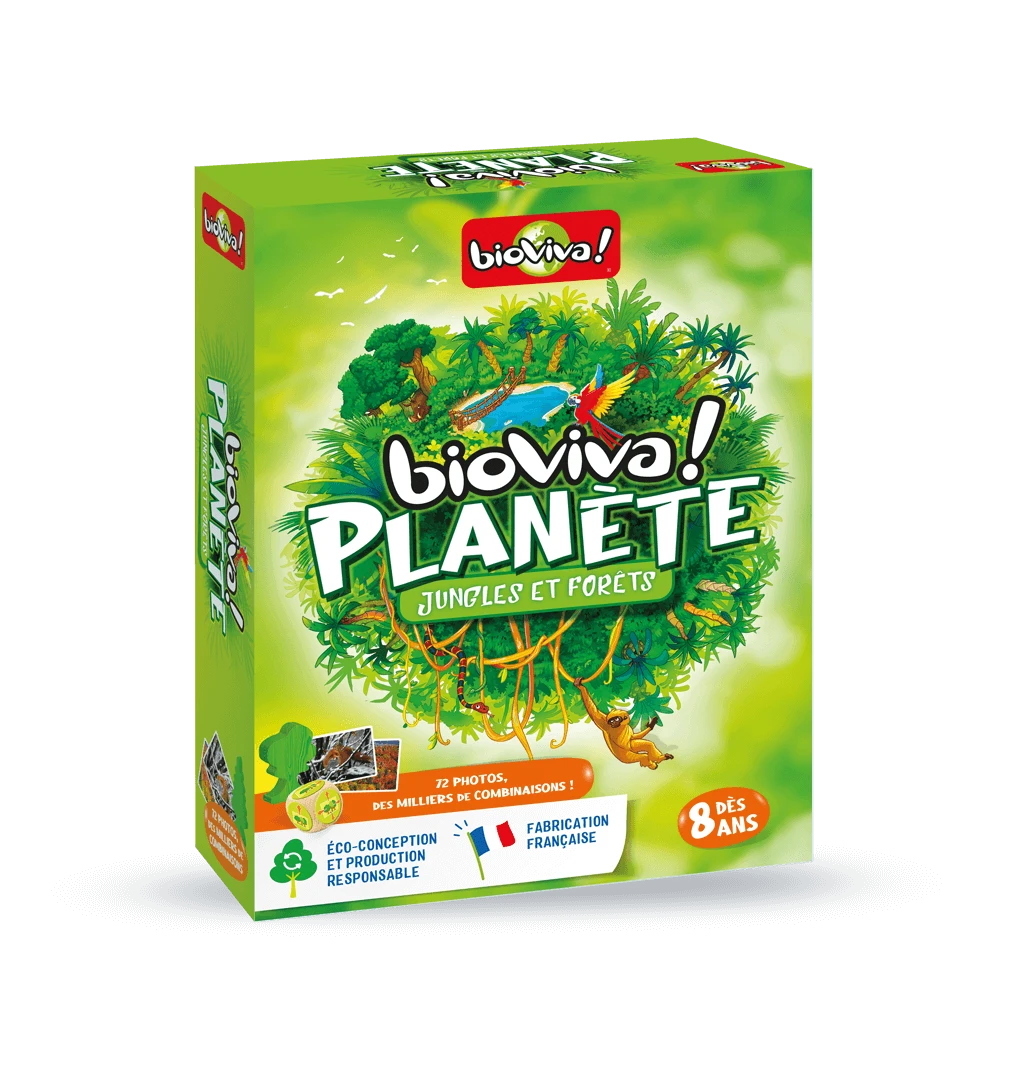 Au travers de photographies étonnantes ou insolites, Bioviva Planète Jungles et Forêts fait la part belle aux richesses de notre planète. Placez vos cartes habilement, en faisant correspondre leurs caractéristiques (indiquées par les pictogrammes) , pour marquer le maximum de points. Un jeu pour s’émerveiller, sans modération.