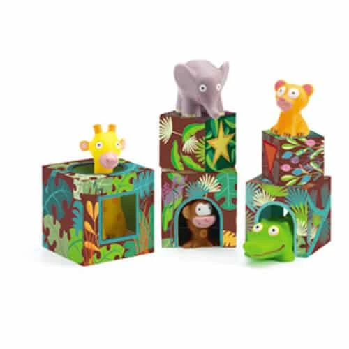 Construction, imagination, manipulation : Invente des histoires avec les animaux et les boites.