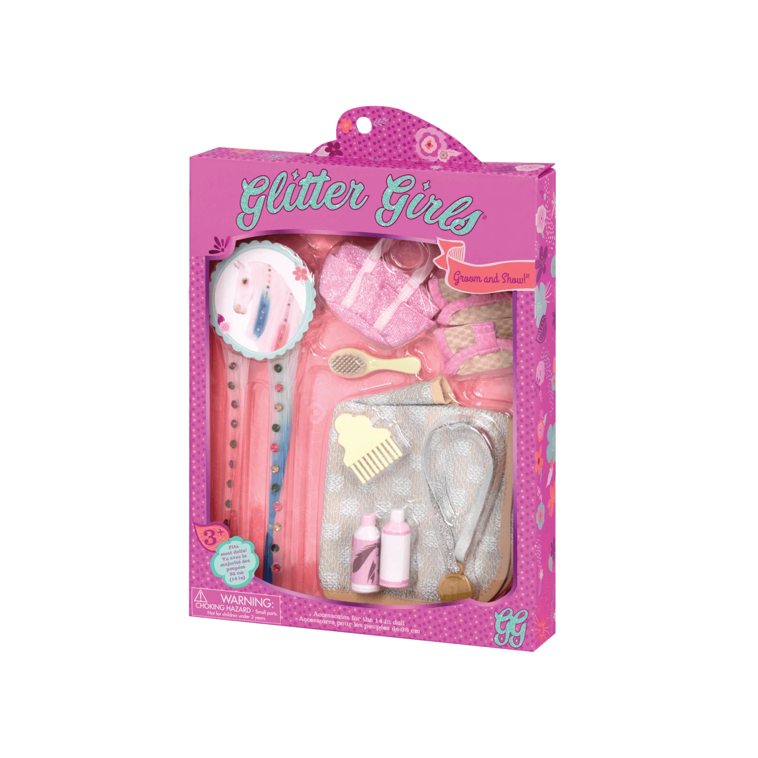 - Comprend: 1 couverture de cheval, 2 enveloppements de cheville, 1 fourre-tout, 2 extensions de crinière à paillettes, 1 brosse, 1 peigne, 1 bouteille de shampoing, 1 bouteille de revitalisant, 1 médaille