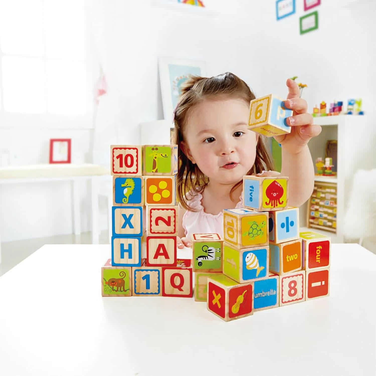 Les lettres, les chiffres et les dessins incitent l’enfant à construire des bâtiments, des mots et inventer des histoires.