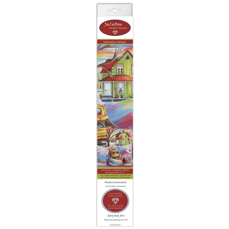 Avec ce kit, vous disposerez de tout ce dont vous avez besoin pour créer une œuvre d’art en broderie diamant de grande envergure. La toile mesure 58 cm x 80 cm, avec une zone de diamants de 50 cm x 80 cm. Plongez-vous dans l’univers artistique de Suzanne Claveau et réalisez une pièce unique qui capturera toute la beauté de son art.