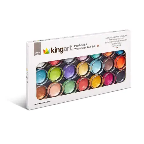 Les aquarelles nacrées Kingart offrent une grande variété de couleurs vives et solubles dans l’eau. Parfait pour les artistes et les amateurs de création qui cherche à se développer avec une peinture riche et facile à mélanger.