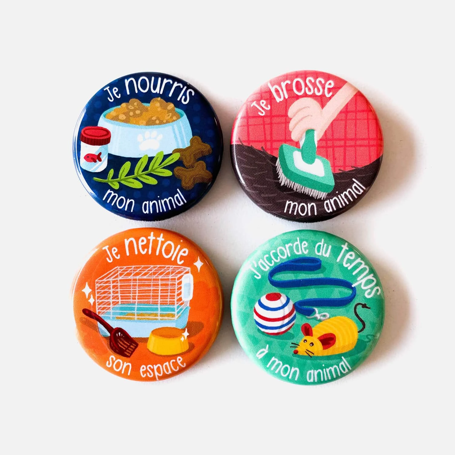 Les 4 aimants « Je prends soin de mon animal » t’aideront à enseigner à ton enfant que notre animal de compagnie n’est ni un jouet, ni un meuble, mais qu’il a besoin d’attention et de soins comme nous.