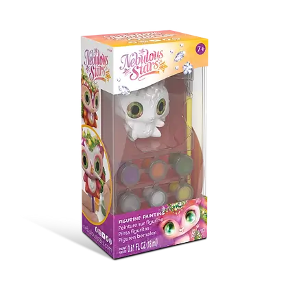 Accueillez les meilleurs amis des Nebulous Stars ! Peignez et collectionnez six créatures fantastiques avec des yeux scintillants grâce à ce kit. Il comprend une figurine prête à peindre, 5 couleurs de peinture acrylique, un vernis pailleté, 2 pinceaux, un bâton en plastique, des strass et des instructions de couleur. Laissez votre créativité briller et donnez vie à ces compagnons magiques !