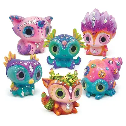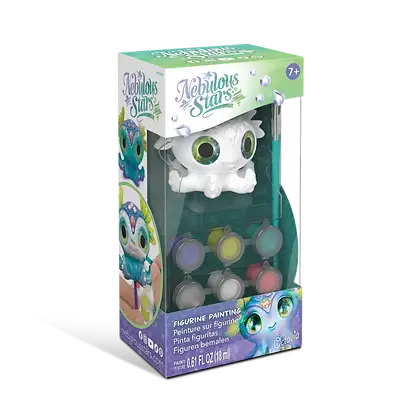 Accueillez les meilleurs amis des Nebulous Stars ! Peignez et collectionnez six créatures fantastiques avec des yeux scintillants grâce à ce kit. Il comprend une figurine prête à peindre, 5 couleurs de peinture acrylique, un vernis pailleté, 2 pinceaux, un bâton en plastique, des strass et des instructions de couleur. Laissez votre créativité briller et donnez vie à ces compagnons magiques !
