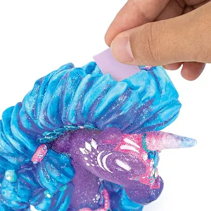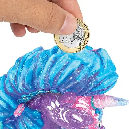 Peins une tirelire licorne unique en son genre ! Décore-la avec des strass scintillants et un vernis brillant. Écris ton souhait le plus cher et conserve-le précieusement à l’intérieur. Le kit comprend une tirelire prête à peindre, 7 couleurs de peinture acrylique, un vernis scintillant, 2 pinceaux, 75 strass, un stylo gel miniature, un mini bloc-notes et des instructions en couleurs. Laisse libre cours à ta créativité et crée une tirelire magique !