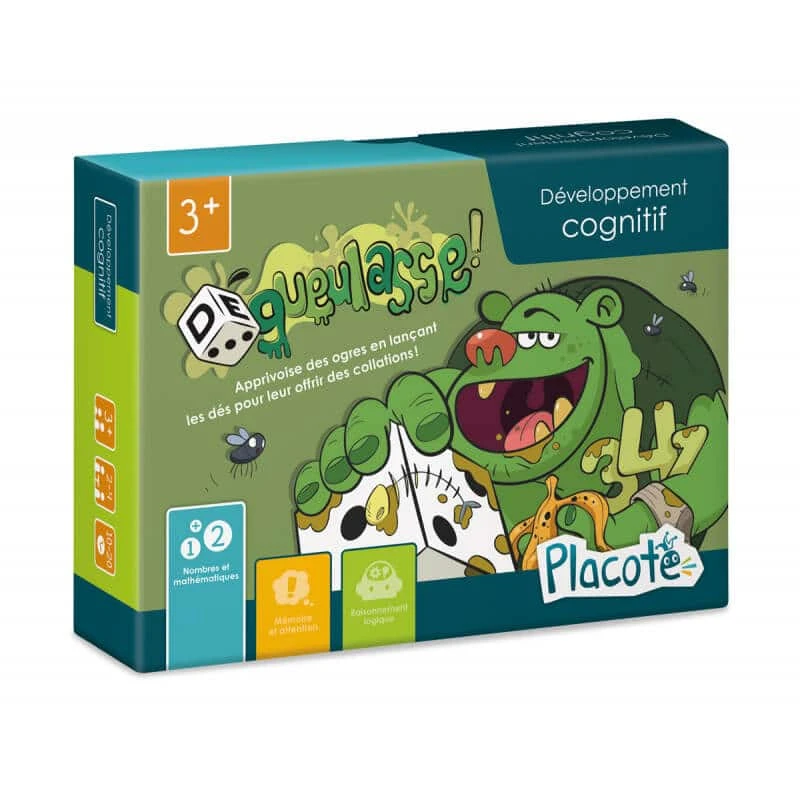 DÉgueulasse! est conçu pour aider les enfants de 3 ans à 9 ½ ans à développer leur compréhension des nombres et leurs habiletés de calcul. Les trois niveaux de difficulté en font un jeu évolutif qui tient compte de l’ordre d’acquisition des différents concepts liés aux nombres.