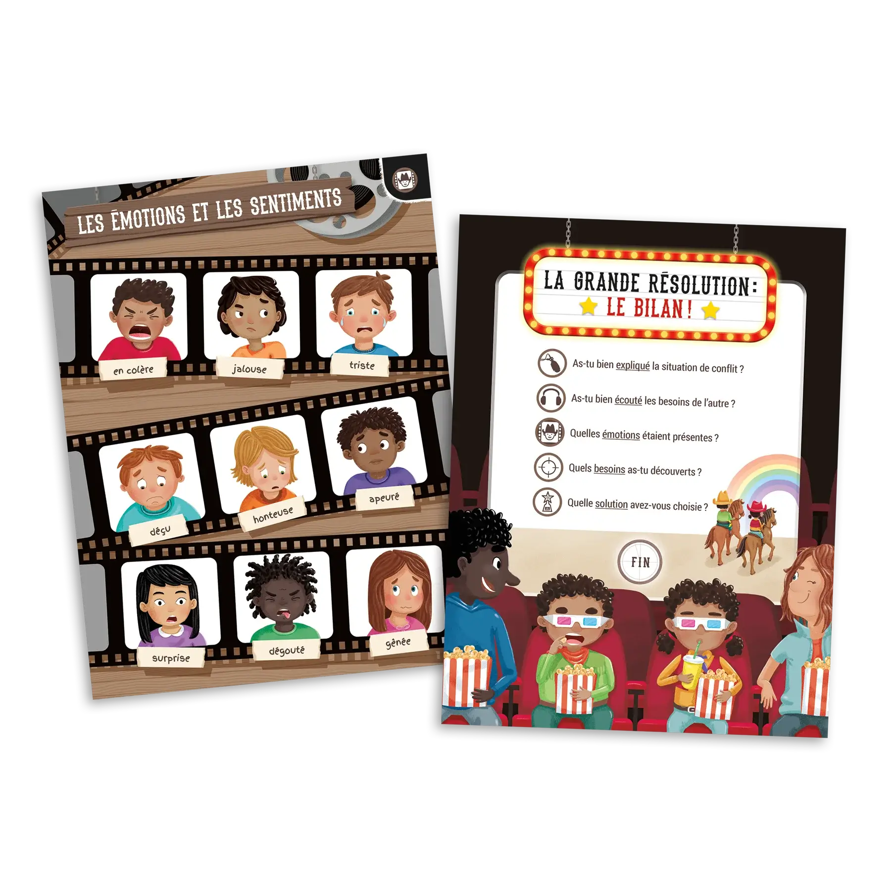 « La Grande Résolution : Le Film! » est un outil conçu pour accompagner les enfants âgés de 5 à 9 ans (et leurs parents !) dans le développement de leurs compétences en résolution de conflits. Il met à disposition du matériel qui facilite la résolution des conflits, tout en suivant une démarche précise. Le guide d’accompagnement destiné aux parents offre une présentation détaillée du matériel et de la démarche, tout en proposant une variété de stratégies pour prévenir et gérer les conflits au quotidien. C’est l’occasion de jouer un rôle actif dans la réalisation de solutions pacifiques aux conflits, tout en favorisant le développement de compétences essentielles chez les enfants. Alors, préparez-vous à créer votre propre film de résolution de conflits et à devenir le réalisateur de l’harmonie familiale !