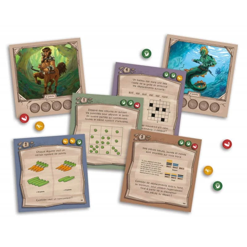 Résous le plus d’énigmes possible pour accumuler des jetons d’habileté qui te permettront d’affronter des créatures fantastiques! Sois le joueur qui obtient le plus de points en combattant ces créatures.
