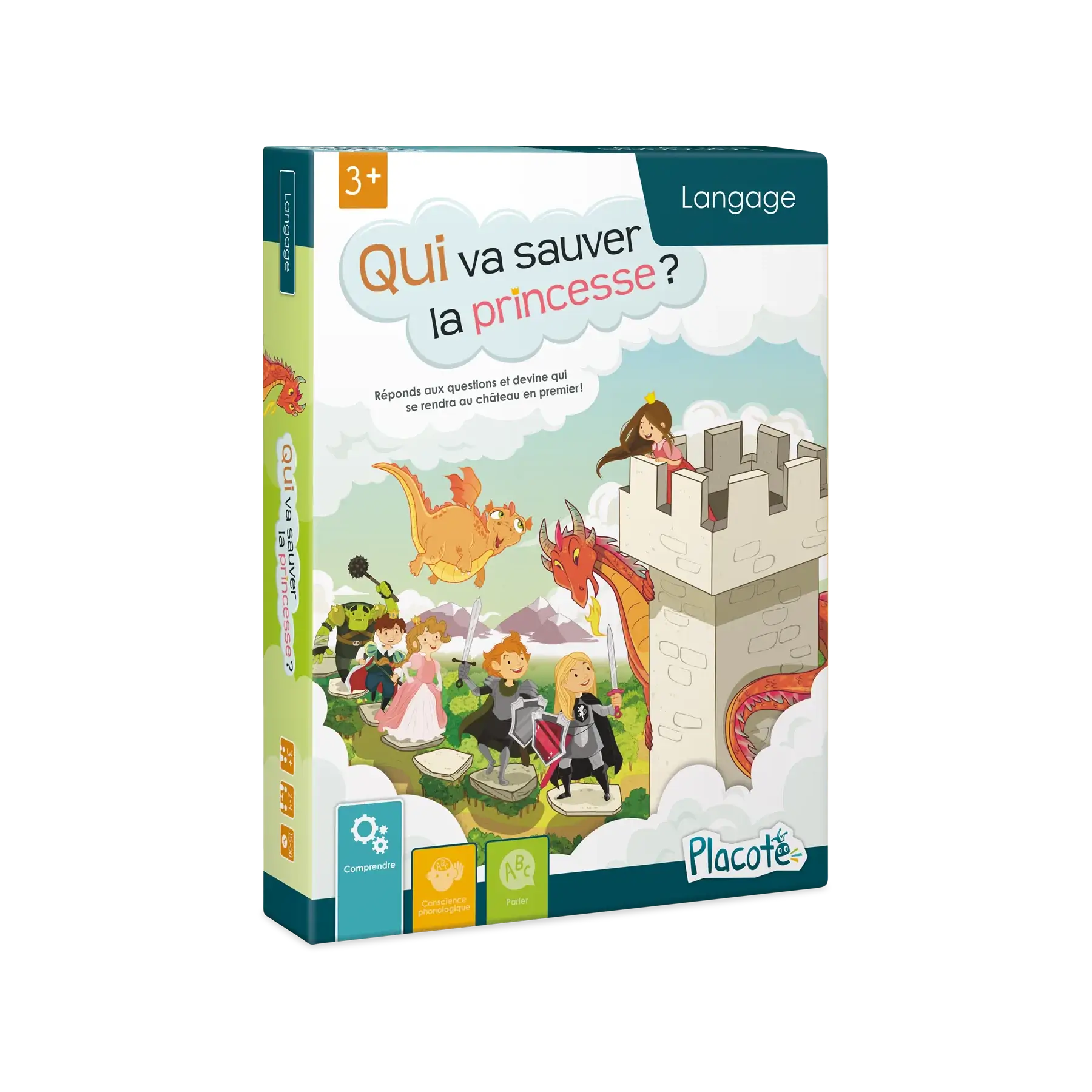 Qui va sauver la princesse? est conçu pour aider les enfants de 3 à 6 ans à comprendre des questions formulées avec les mots interrogatifs « où », « qui », « avec quoi » et « quand » qui font appel à leurs connaissances personnelles.