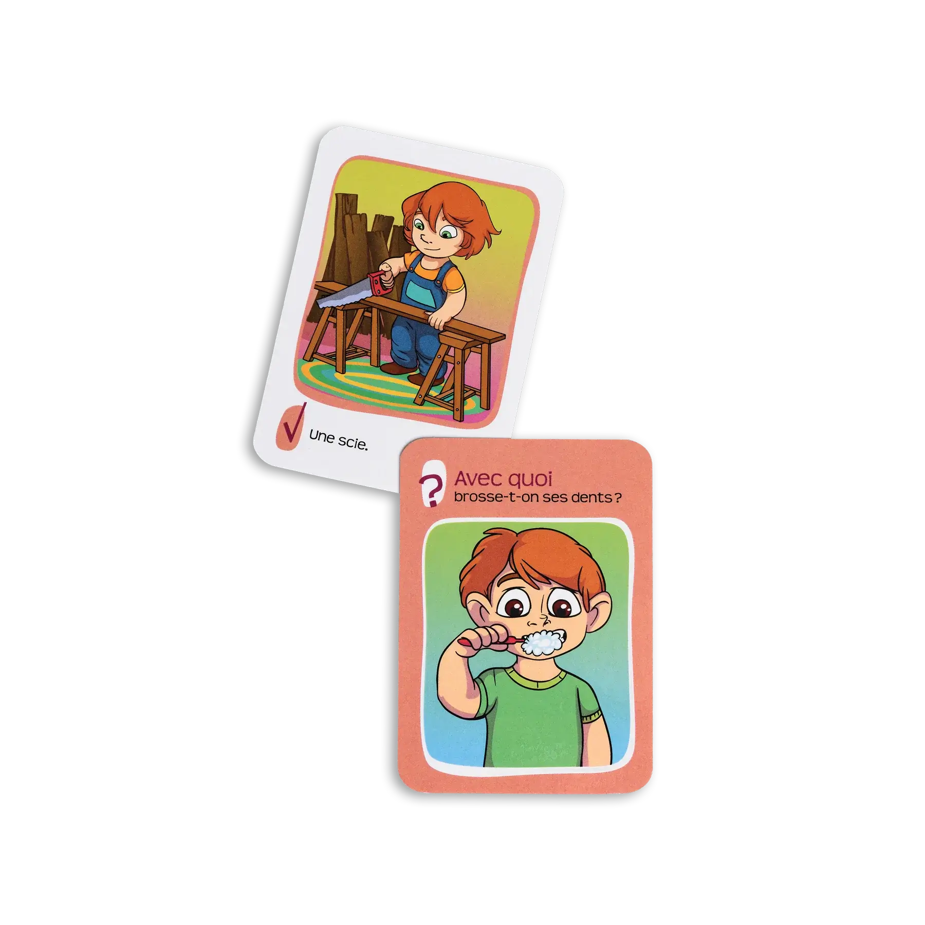 Les cartes questions-réponses illustrées leur permettent de valider eux-mêmes leurs réponses.