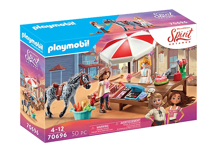 Lucky et Abigail adorent faire de longues promenades avec leurs chevaux dans la prairie sauvage. À leur retour en ville après une aventure passionnante, ils aiment faire un détour par le Miradero Candy Shop. Tant de gourmandises alléchantes vous attendent ici: cupcakes savoureux, gâteaux sucrés et pâtisseries sont présentés au comptoir de vente. Avec autant de choix, il n’est pas facile pour les deux filles de se décider. Abigail, particulièrement gourmande, aimerait tout essayer. Aujourd’hui, les deux filles choisissent un petit gâteau et en profitent. Délicieuse! L’ensemble se compose des amis Lucky et Abigail, ainsi que d’un cheval, d’un stand de bonbons avec des cupcakes, des gâteaux et des pâtisseries, une caisse enregistreuse et de nombreux autres petits extras.