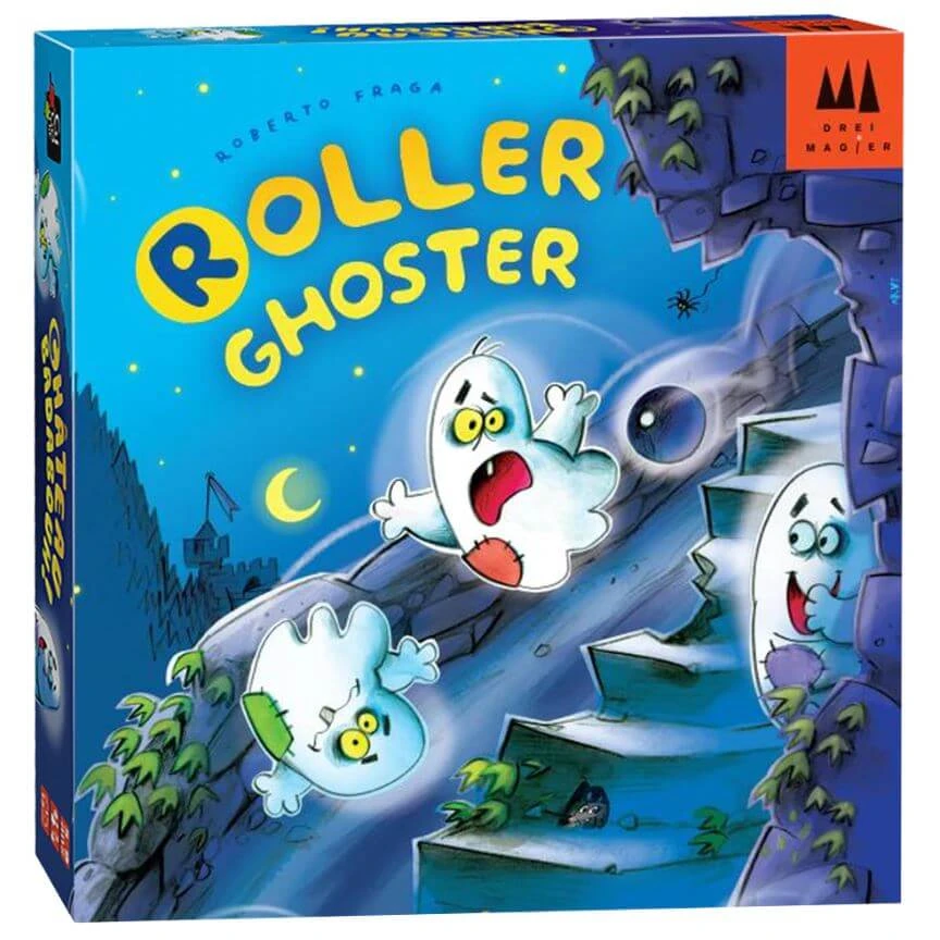 Dans Roller Ghoster, c’est le moment de la course annuelle des fantômes, où les joueurs s’affrontent pour atteindre le sommet d’un manoir en ruine. Cependant, il y a un élément perturbateur : les invités à l’intérieur de la maison lancent des objets sur les joueurs. À chaque lancer, la tour est tordue, libérant des billes qui descendent du manoir vers les meeples fantômes des joueurs.