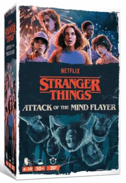 Le Flagelleur Mental est en train de créer une armée pour envahir la Terre ! Soyez vigilant et essayez de découvrir qui, parmi vous, est possédé et l’empêcher de vous attaquer. «L’attaque du Flagelleur Mental» est un jeu d’identité secrète innovant et rapide basé sur l’univers de Stranger Things, la série télévisée populaire de Netflix.