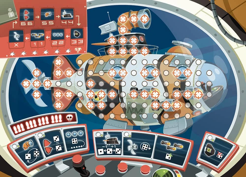 Torpiller consiste à dessiner les points de notre dé sur le sous-marin de notre fiche (le sous-marin qu’on doit couler).
