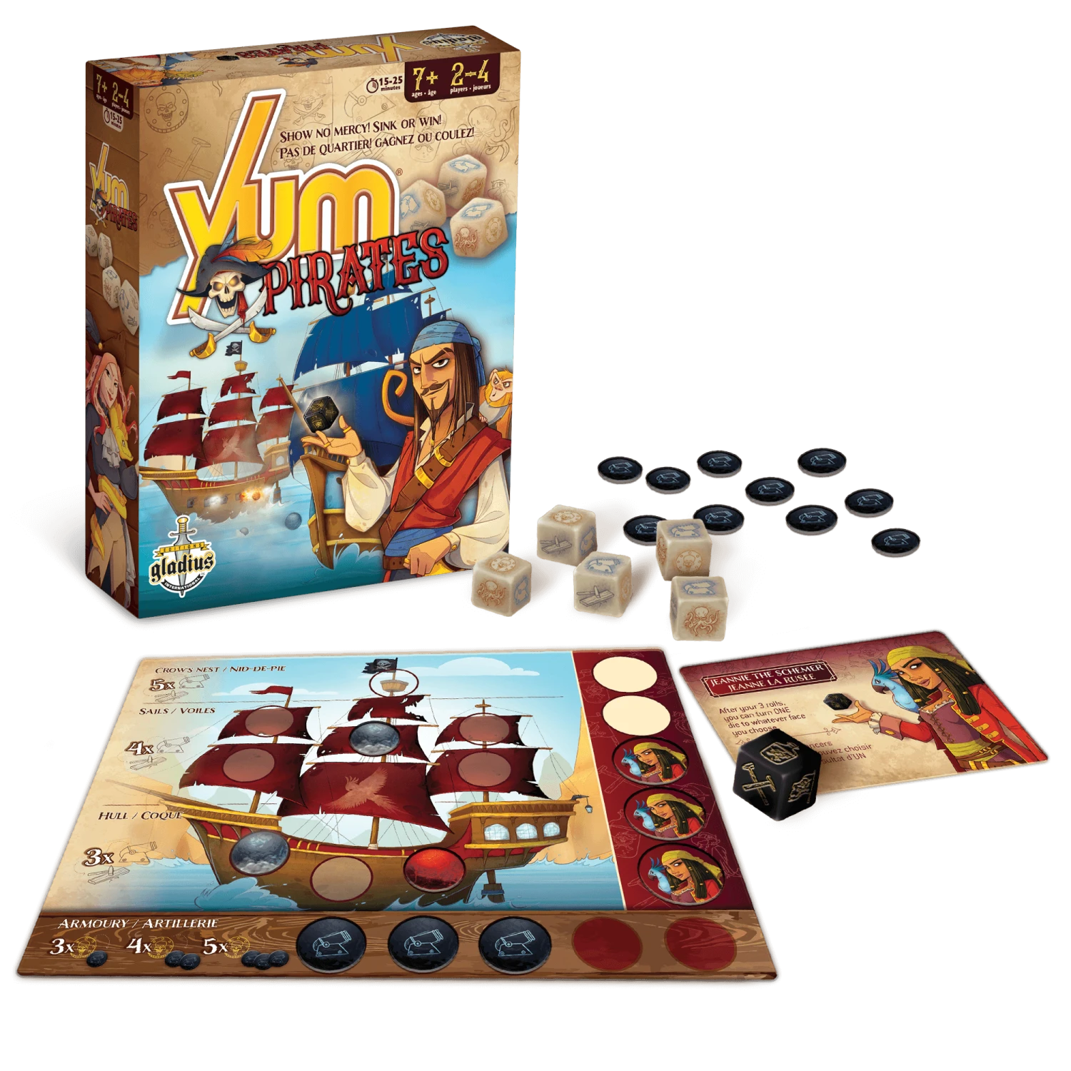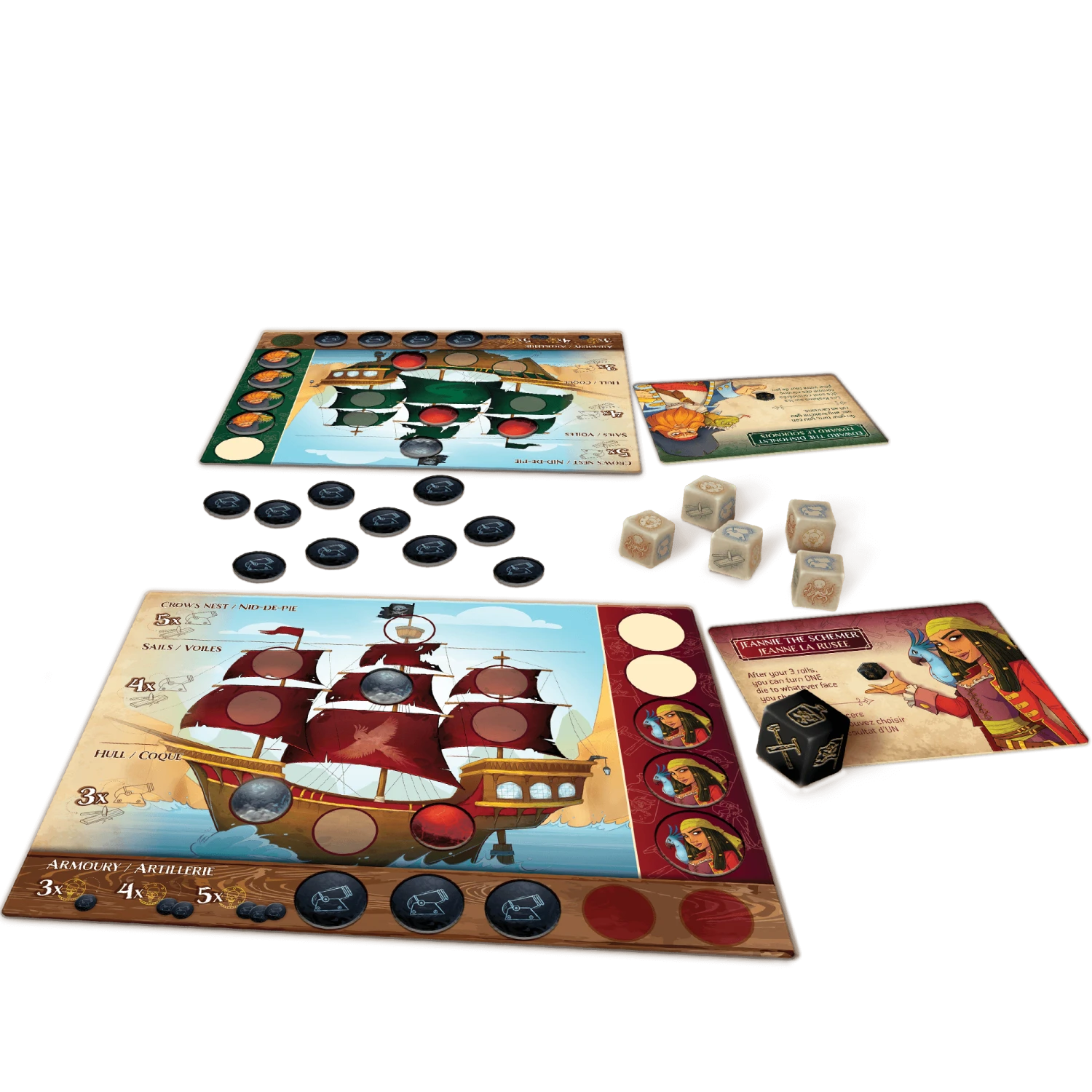 Allez-vous lancer le dé de pouvoir pour saisir l’élixir, ou opterez-vous pour une attaque directe ? Est-ce le moment de mettre en avant la réparation de votre navire ? Dans ce jeu de dés de piraterie, qui tire son inspiration du fameux Yum, formez des combinaisons victorieuses et envoyez par le fond les navires ennemis pour demeurer en tant que dernier pirate voguant sur les flots.